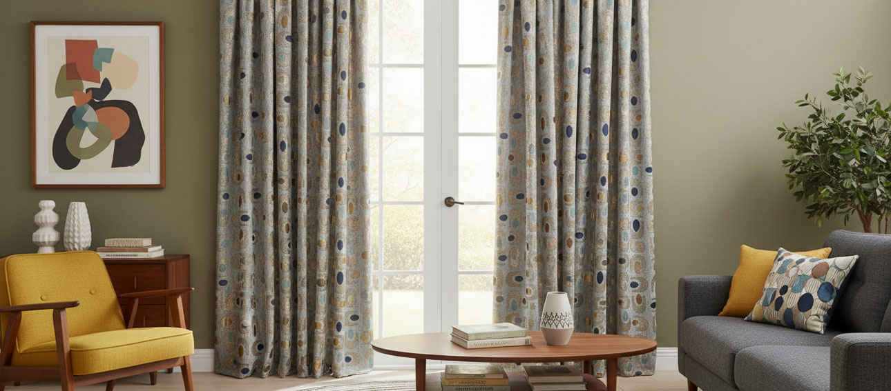 Bold Colours: Embrace the retro colour palette with mid-century modern curtains. Vibrant oranges, teals, and earthy tones are the way to go.