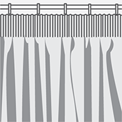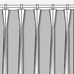 Example Heading: Pencil Pleat Approx. Fullness: 1.8x to 2.3x Ungathered Curtain Width |