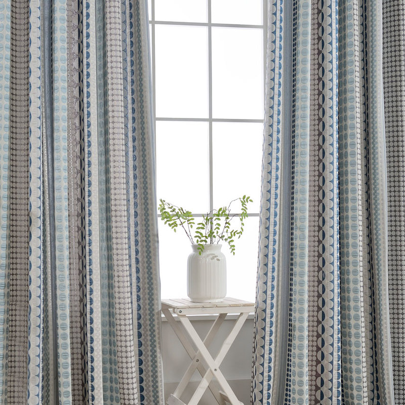 Add modern flair to your space with these contemporary curtains. Bold dotted patterns woven into textured 3D jacquard create a dynamic geometric rhythm, bringing energy and visual interest to any room while complementing eclectic and modern interiors.