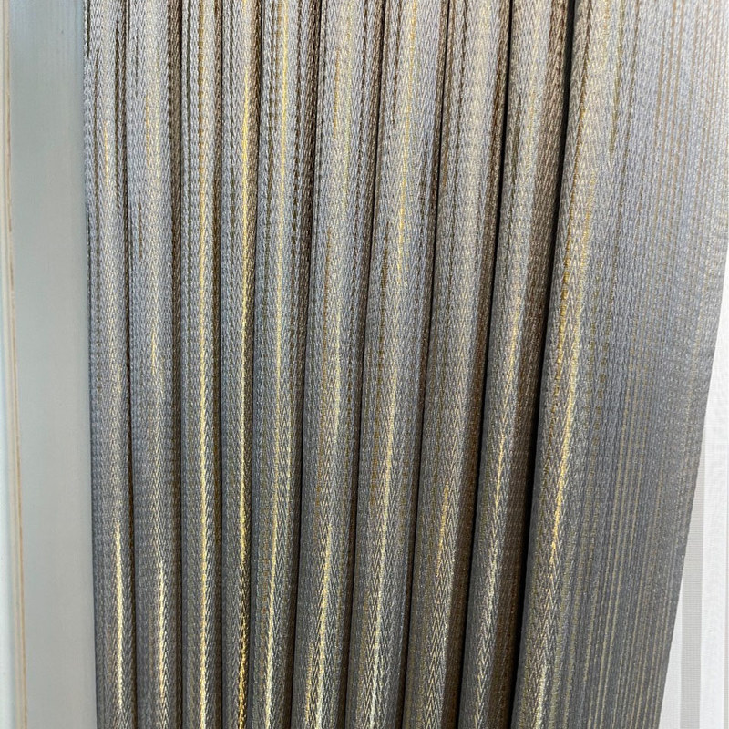Sunbeam Glistening Subtle Textured Striped Champagne Gold and Grey Curtain
