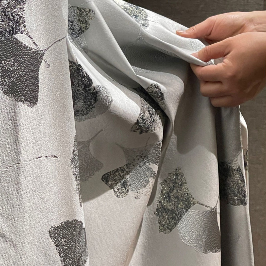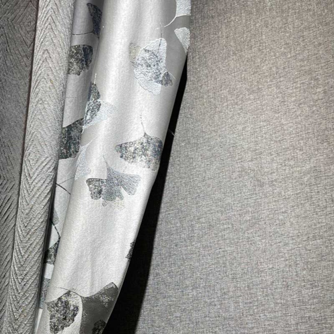 This modern design will complement any room of choice and would serve as a bold feature of decor. The ginkgo leaf pattern, rich textures and sparkling gold details is stylish and the silvery grey color appears sleek.