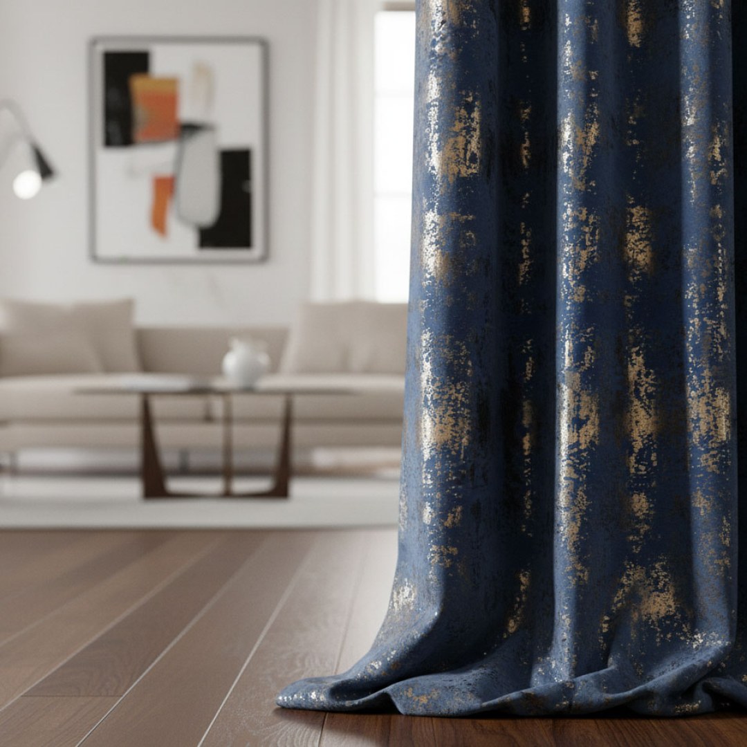 Life is better when you are covered in glitter. Shine all day with these dazzling navy blue velvet curtains adorned with gold glitter!