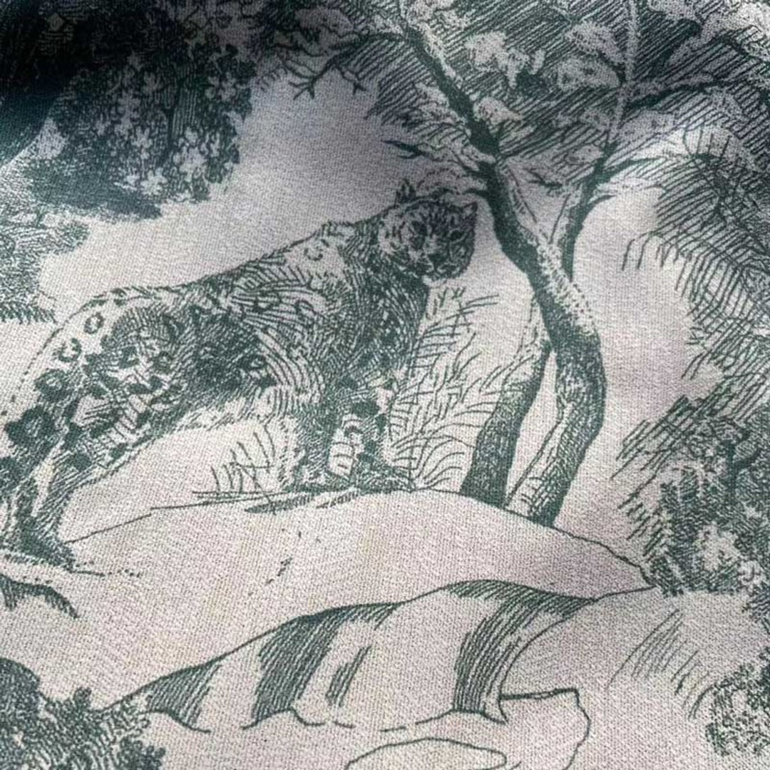 Experience the enchanting ambience of French toile de Jouy as this matcha green blackout curtain gracefully drapes your windows, offering a captivating and soothing touch to your home. Its opulent backdrop features a meticulously woven forest scene with delicate bear, owl, leopard motifs, infusing an untamed beauty.