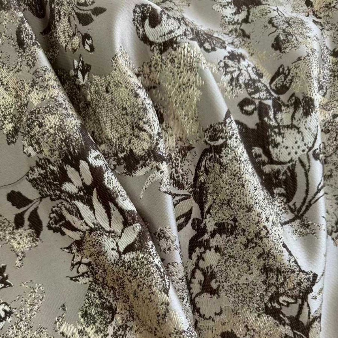 Experience the captivating elegance of Floral Reverie, where abstract floral motifs are woven with subtle metallic threads over a serene, muted background.