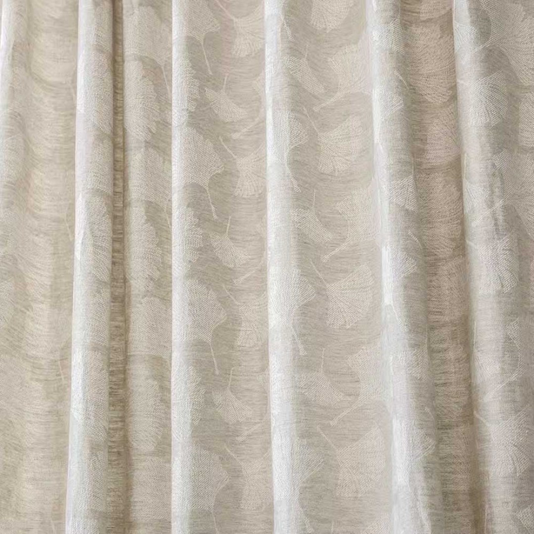 Gingko Rain Premium Jacquard Floral Drew Retting Linen Curtain