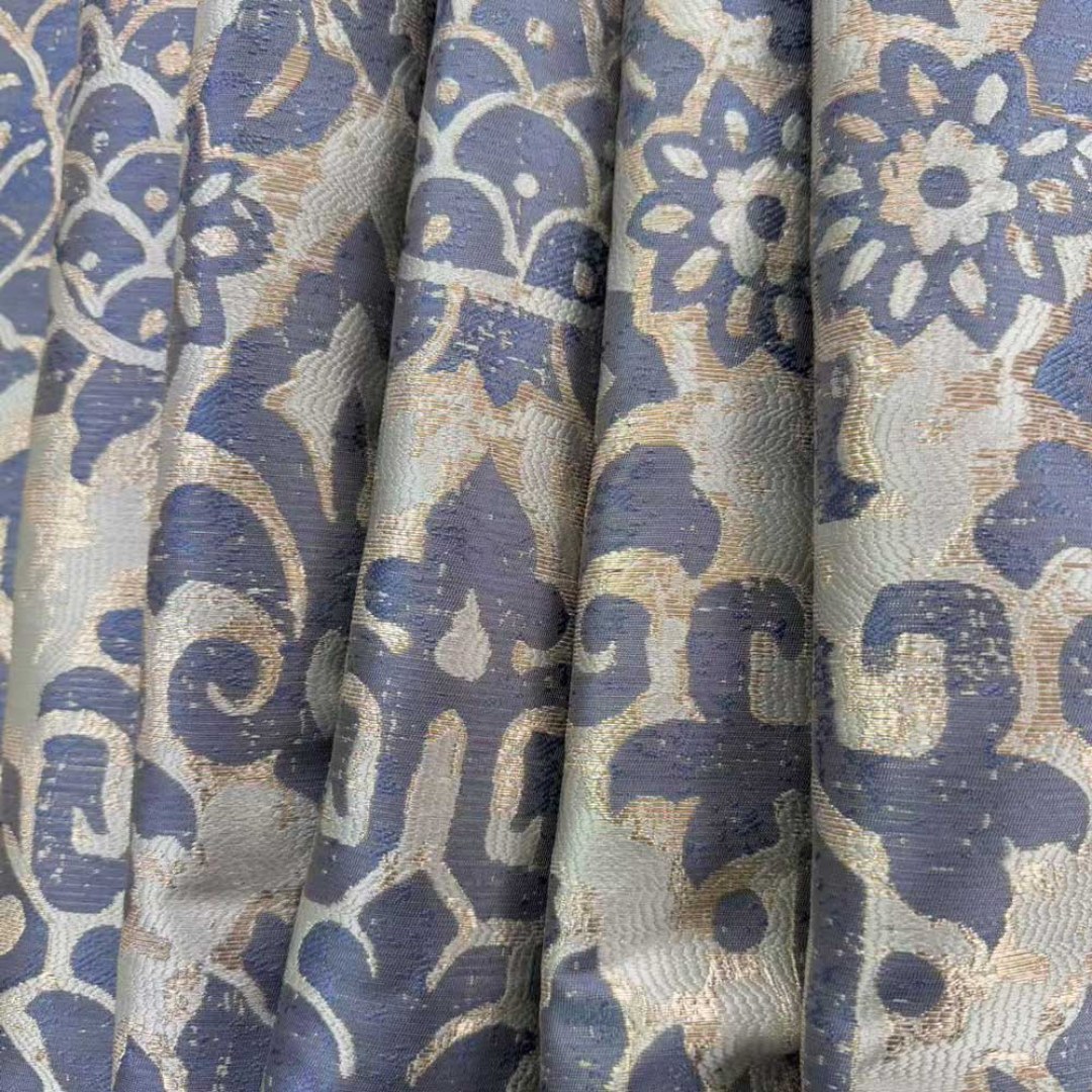 Royal Indigo Luxury Jacquard Blue and Gold Floral Curtains