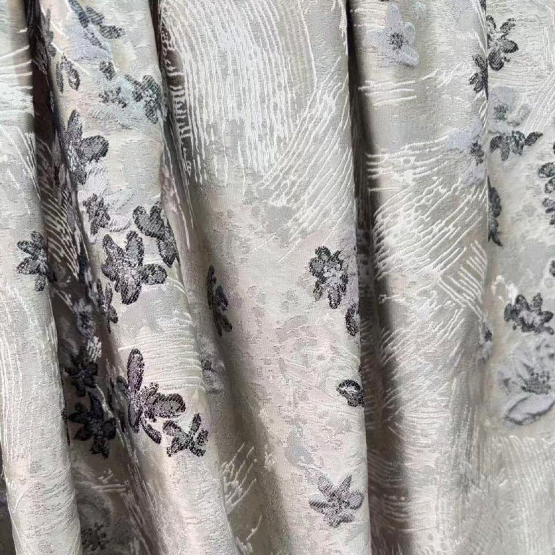 Moonlit Garden Silver and Black 3D Jacquard Floral Curtain