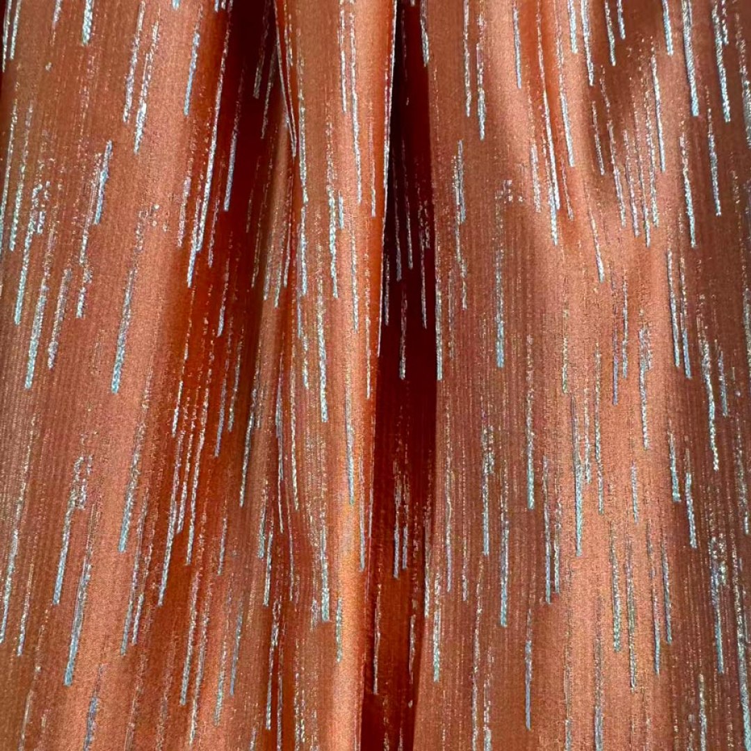 Bring contemporary elegance into your home. This fabric features refined vertical stripes accented with a subtle metallic sheen, creating a look that is both sophisticated and versatile.