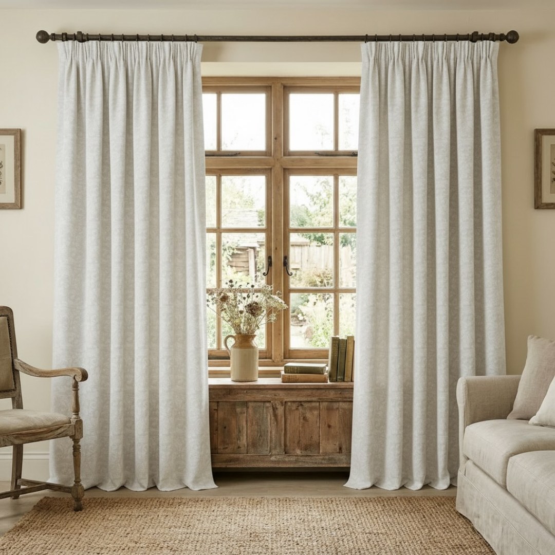 Garden Whisper brings soft elegance and understated beauty to any space. Featuring a delicate tonal floral damask pattern with subtle raised motifs, this breathable linen-cotton blend offers beautiful drape, natural texture, and gentle light filtration. It delivers quiet sophistication and everyday comfort, making it perfect for custom curtains in modern, coastal, farmhouse, or contemporary homes.