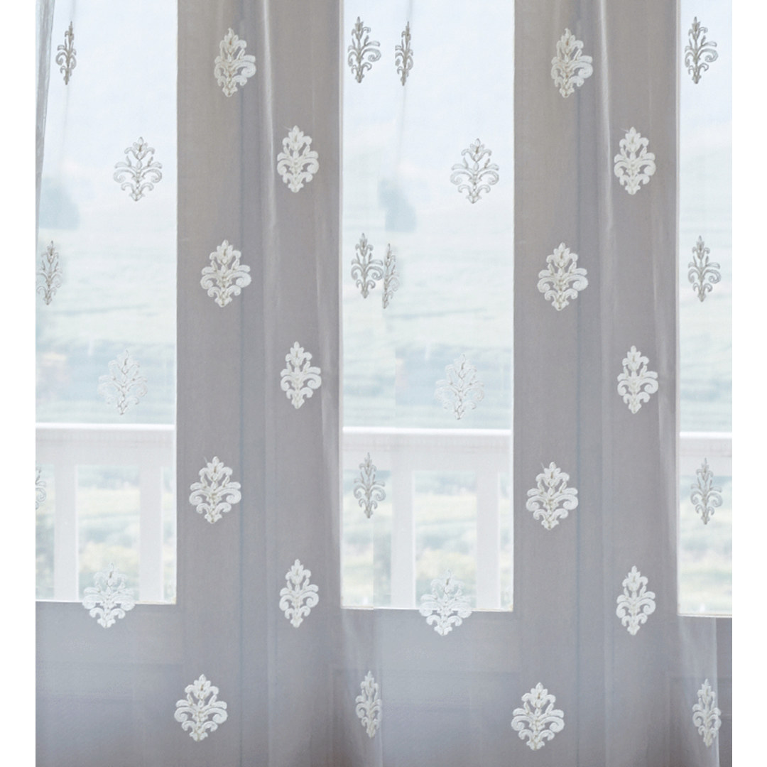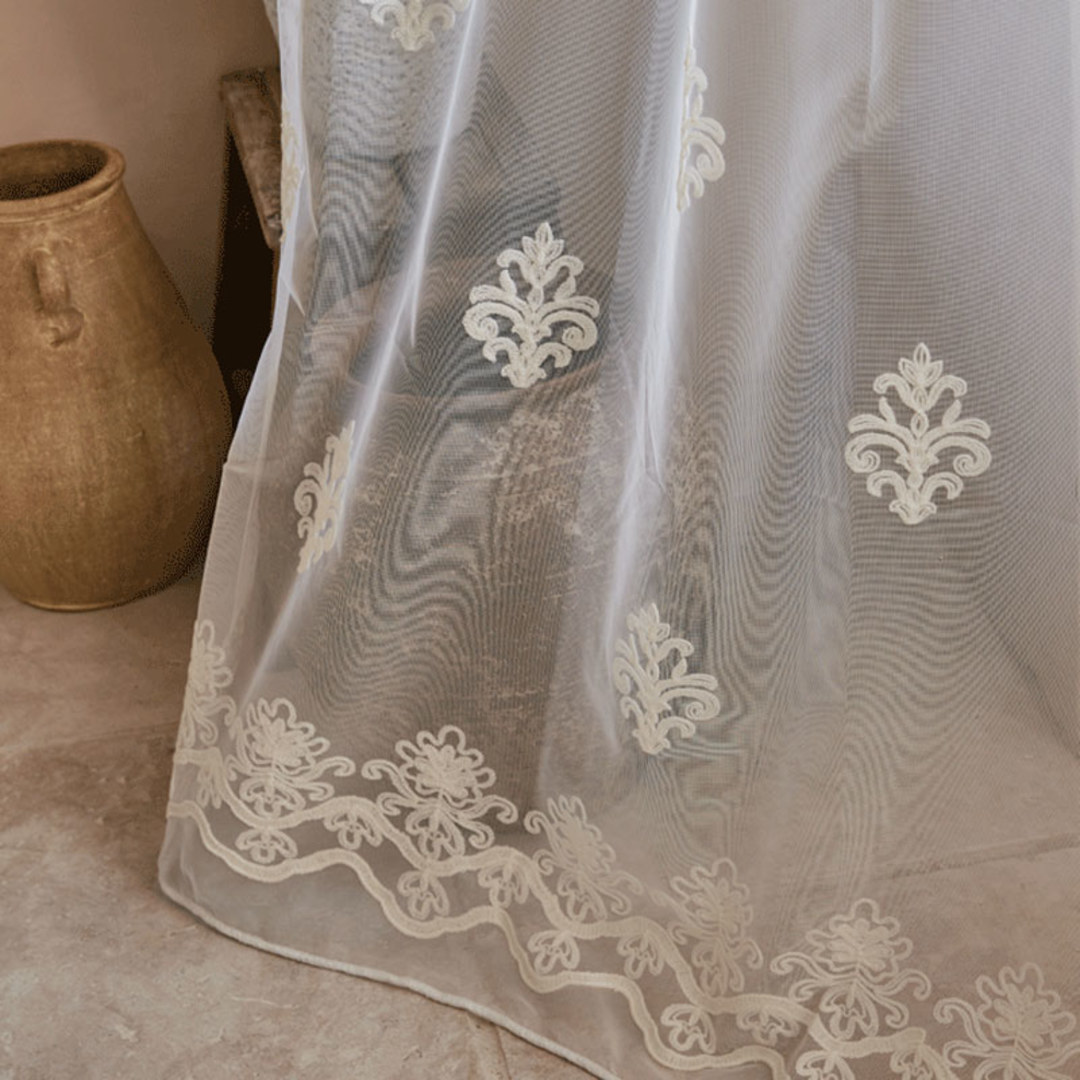 Let the natural light shine through with this beautiful soft embroidered tulle curtain.