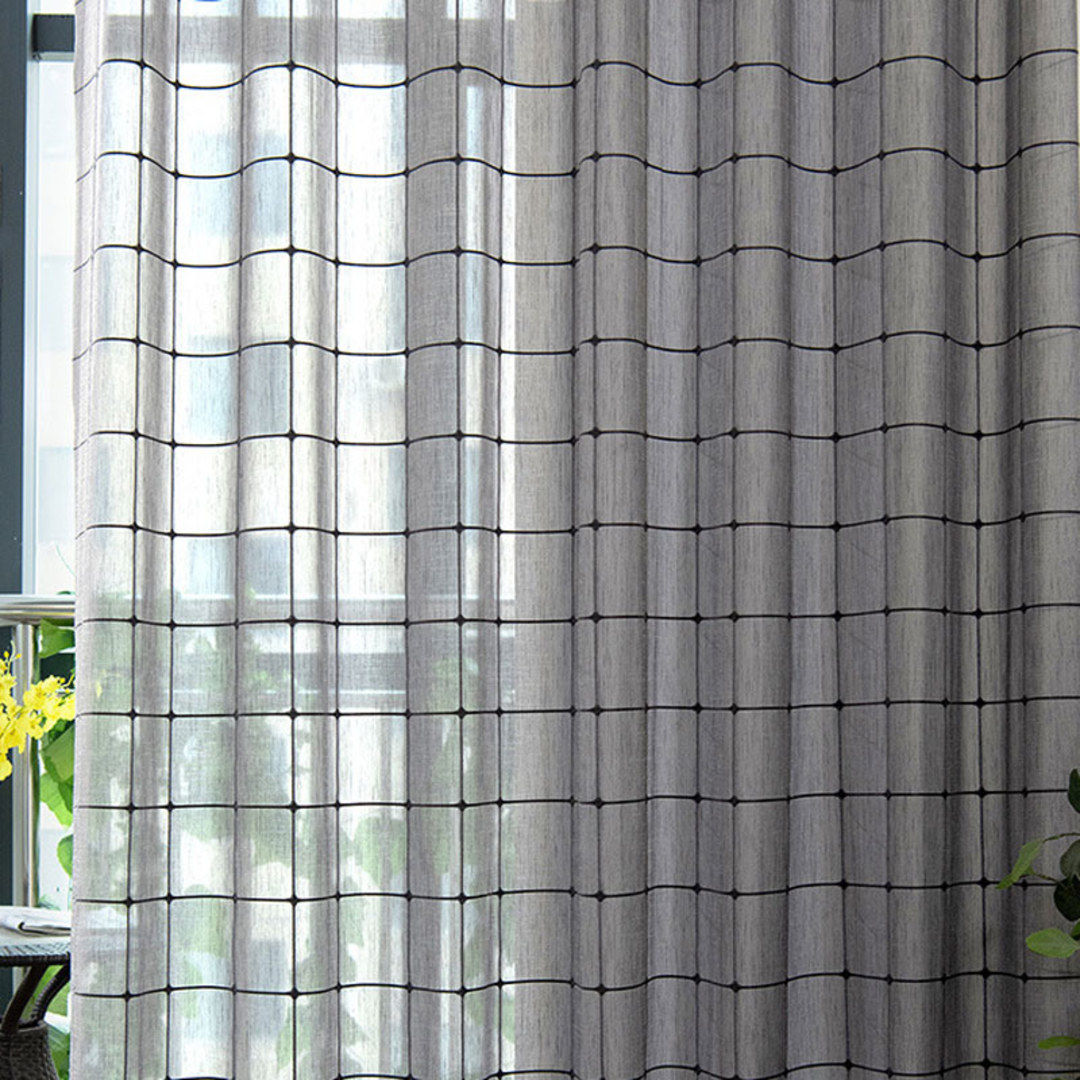 Create a relaxed living space using a traditional curtain design in a simple windowpane pattern. The larger scale is an update of a classic pattern and provides a neat look to the space.